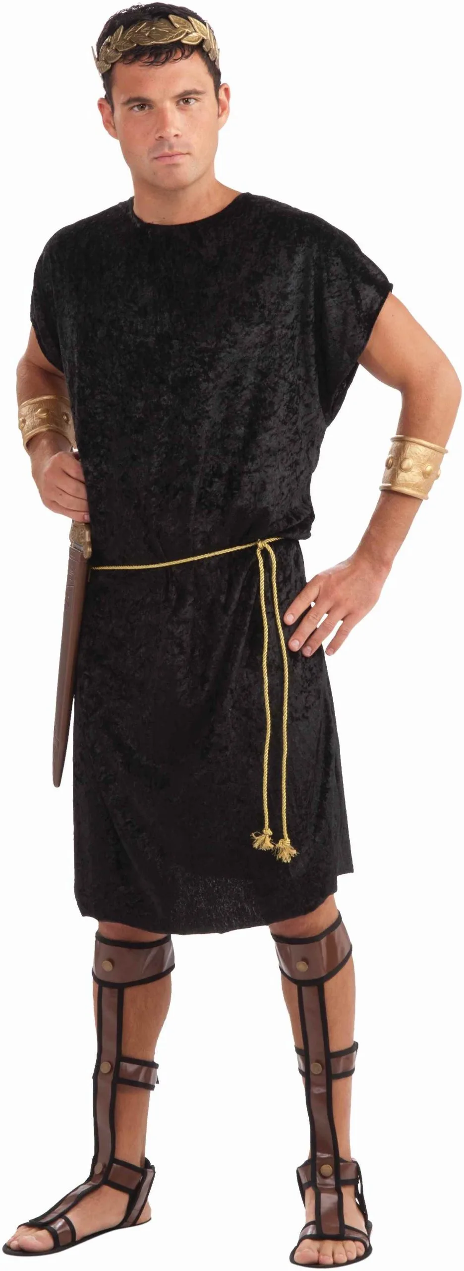 Weather you’re a great Roman leader or a simple peasant this is the costume for you! Includes a solid black knee length tunic and a gold rope style belt.