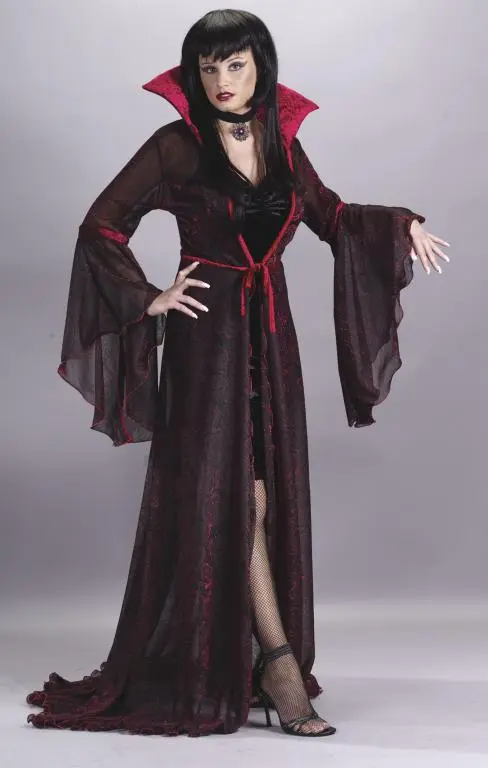 Looking Mighty Fine!Costume Includes: Black dress, coat with shimmering Gothic Rose pattern, velvet belt, sleeve accents and collar.Available sizes: